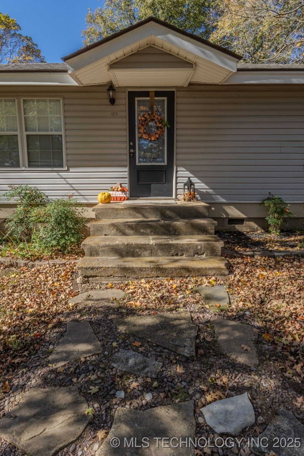 Amazing price on this remodeled home, approx. 3 miles from the corner of Hwy 82 and Alt Hwy 412. (The intersection is between Eastside Church of Christ and the Pirate Arena.) Trees surround this home, and there is a front covered porch with an ornate front door with glass insets. It makes a nice first impression. The home is move-in-ready. This is not the ordinary cookie-cutter ranch home. You will appreciate the design and rounded archway in the living room and hallway. There is a large rectangular cutout between the living room and kitchen. You never feel divided from your family and friends while in the kitchen. It has a nice layout that flows easily throughout. There are 4 exterior doors and wide hallways that give the home a spaciousness you will appreciate. There is a bedroom off the living room, another one near the main bathroom, and the master bedroom is down the hall. The utility room is oversized and has shelving and extra storage space. The kitchen is an eat-in kitchen with extra room or the living room is large enough for a dining table. The kitchen countertops, cabinets are new, new faucets, windows, and flooring. New appliances. Remodeled bathrooms. There is a new heat and air unit, new. This location is just minutes from all the businesses and activities Locust Grove has to offer, plus easy access to the turnpike and Lake Hudson. There is an OUT building that is not a Barn or a Shop. It does not have doors on it, and the building has an older metal roof. Possibly store a tractor or lawn equipment. With some TLC you could make this air-tight and use it for whatever you need. It has a dirt floor. There is a cement slab near by that could be used as a patio area or put a shipping container there for more storage. This home is unique and will surprise you with the possibilities. Come see it. More land is available to purchase.
