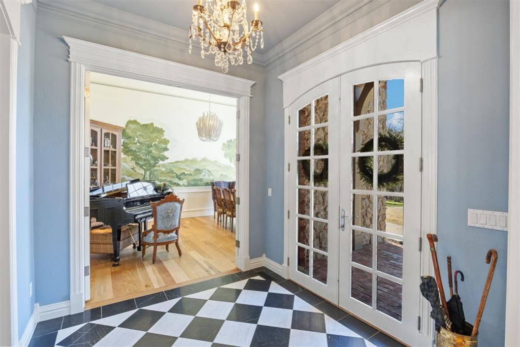 Beyond the tree-lined drive, a different pace of life unfolds.This Jack Arnold Design is set on five private acres, a Ralph Lauren-inspired estate offers 3,491 square feet of curated living-where black-and-white marble floors greet you beneath crystal light and French doors open to expansive skies.Hand-painted murals, soaring ceilings, and a dramatic stone fireplace create warmth and architectural presence. The primary suite feels like a retreat, anchored by vaulted ceilings and natural light.But what sets this property apart is its substance.A fully insulated 40x80 shop elevates the property's versatility, complete with a 1,000-square-foot apartment space already framed and wired with a separate electric meter-ideal for guest quarters, multi-generational living, or workspace.Equipped with a whole-house generator, two water wells, and five manicured acres, this property offers both architectural character and infrastructure rarely found together.