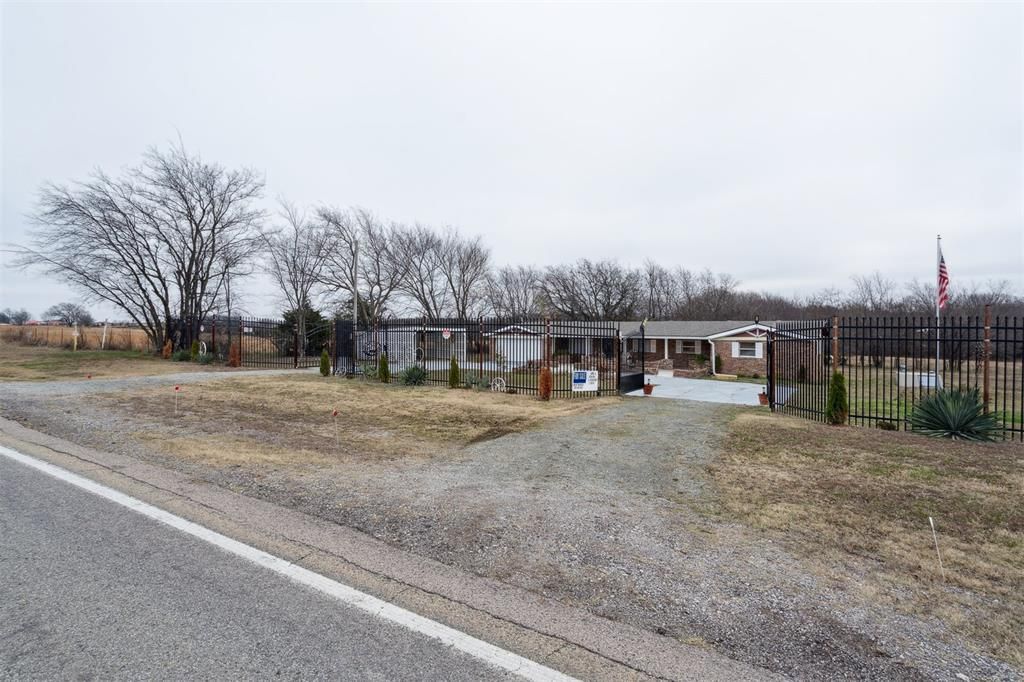 MLS Description Beautifully rebuilt in 2025, this 4-bedroom, 1.5-bath home offers approximately 1,871 sq ft of living space on a 1-acre lot. Located on a paved road just 6 miles from Okemah and 20 miles south of Bristow, the property combines modern updates with country charm.Nearly every element has been replaced-new lumber framing, roof, walls, ceilings, floors, electrical, plumbing, drywall, heating, and central air-while preserving the original brick exterior. Termite treatment was completed in 2024, with all walls and crawlspace treated for added protection.The home features 11 rooms across an estimated 76' x 30' footprint, a 2-car carport, paved horseshoe drive, and striking black iron fencing with decorative gates. A spacious 3-bay detached garage (built in 2024) and a huge front patio, 8 ft x 38 ft, provide ample storage and outdoor living.The backyard is perfect for entertaining and homesteading, with garden space, apple trees, a large picnic shelter, back porch, and a versatile 12' x 8' shed ideal for a chicken house. Utilities include electrical, LP gas, and rural water. With fully insulated walls, the home remains quiet and energy-efficient, offering privacy, security, and plenty of parking.This property is move-in ready with abundant storage, a massive shop, and inviting spaces to gather with family and friends.