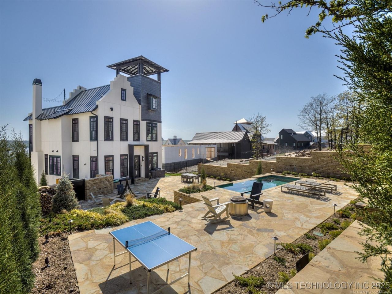 Welcome to 107 Lower Greenway, a rare four-story retreat in the heart of Carlton Landing. This spacious home was designed for gathering, featuring a custom built-in bunk room and multiple levels of living space to maximize comfort and functionality. Set on a coveted double lot, the property boasts an expansive backyard with panoramic lake views that capture the beauty of Lake Eufaula. Enjoy year-round outdoor living with two heated swimming pools, a dramatic fire sculpture, and the walkable charm Carlton Landing is known for. Perfect for both full-time living or as a luxurious getaway, this home blends thoughtful design, unique amenities, and unbeatable views into one remarkable property.
