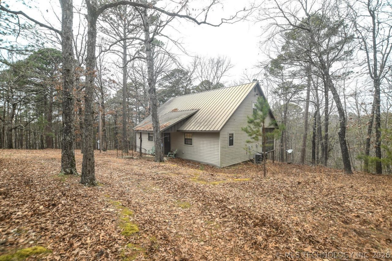 Retreat to the Woods in Flint Ridge Resort near Bear Lake! Secluded, one-owner cabin is a perfect getaway, offering 1680 sq ft (CH) of living space plus a 480 sq ft (CH) screened porch designed for year-round enjoyment with propane heat and TV wiring. The open concept main level features a spacious living room, kitchen, and dining area, along with a primary bedroom, full bath with walk-in shower, and laundry. Upstairs, two guest bedrooms share a full bath - ideal for hosting family and friends. The home is equipped with a dual central heat and air system for energy efficiency. Located in 7,000-acre gated Flint Ridge community with 24-hour security, residents enjoy private roads (ATV-friendly), private lakes & Illinois River access for fishing and seasonal canoes/shuttles, Deer Valley Golf Course, Back Nine Restaurant & Clubhouse, swimming pools, tennis and mini-golf. Overnight accommodations are also available for residents' guests. Live where every day feels like the weekend!