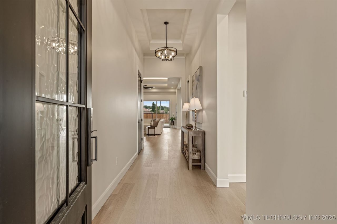 Some homes impress. A few go further - they inspire. This stunning new construction in desirable Jenks Southeast Schools is one of the rare ones, blending sophistication, comfort, and timeless design in a way that inspires elevated and effortless unwinding from today's hectic pace. Step inside and every detail tells its story. Three spacious Bedrooms, three and a half Bathrooms, all finished with precision and care. At the heart: a gorgeous gourmet Kitchen designed for those who love both cooking and gathering. Custom cabinetry, premium appliances, and an oversized island wrapped in Taj Mahal quartzite make a striking first impression. Behind it, a Prep Pantry hides the work but adds the luxury - complete with wine fridge, icemaker, and sink - the kind of touch that makes mealtime a pleasure. The expansive Great Room flows wide and open, anchored by a statement fireplace flanked with built-ins and bookshelves. A wall of windows brings in daylight, glancing off premium engineered hardwoods that run throughout, giving every room a sense of warmth and permanence. Tucked nearby, a pocket Office offers just enough seclusion to work without missing the rhythm of home. The Primary Suite is a retreat of its own. A spa-inspired Bathroom features a soaking tub, walk-in shower, and custom dressing area - a private sanctuary at day's end. Two additional Ensuite Bedrooms extend comfort and privacy, each with its own bath and thoughtful finishes. Outdoors, welcome relaxation continues under the covered patio where a stone fireplace sets the scene for elegant entertaining or quiet evenings under the stars, all year long. Every system is thoughtfully designed: tankless hot water for endless comfort, spray foam insulation for efficiency, epoxy garage floors for durability. Perfectly positioned in South Tulsa with easy Creek Turnpike access plus fine dining, and premier shopping nearby, this home is so much more than new construction-it's a lifestyle ready to be embraced!