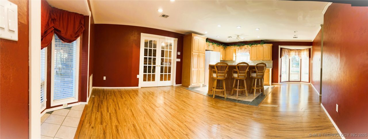 If you are looking for a 3 BR, 2 Ba, 2,100 sq ft (Per Mayes County Assessors Records) home, very convenient to schools, churches, park, restaurants, businesses, about 10 minutes from MAIP and Lake Hudson yet tucked away on a low-traffic, dead-end street with plenty of parking plus a wide carport and a meadow behind the back yard then check this out. Upgraded "Open-Concept" with "Eat-In" kitchen, custom island (incl. 3 matching bar chairs), custom cabinets with pull-outs etc., bay windows and large dining area are sure to please. Large living area w wood-burning fireplace, large multi-purpose room, (laundry / office / craft room), central HVAC with ductwork in ceiling, 8-year old roof, insulated vinyl framed windows, connection panel for back-up electrical generator, purified drinking water system and much more are sure to please. The spacious Primary Bedroom "Suite", spanning across the entire west end, has plenty of room and LOTS of closet space. Currently priced-to-sell "AS-IS". The entire perimeter of the home has been completely piered (with documentation), and it currently needs some slab and plumbing work underneath in order to qualify for some loan types. Must see this beautiful home to feel the "possibilities" it offers to you. Reasonable offers considered.