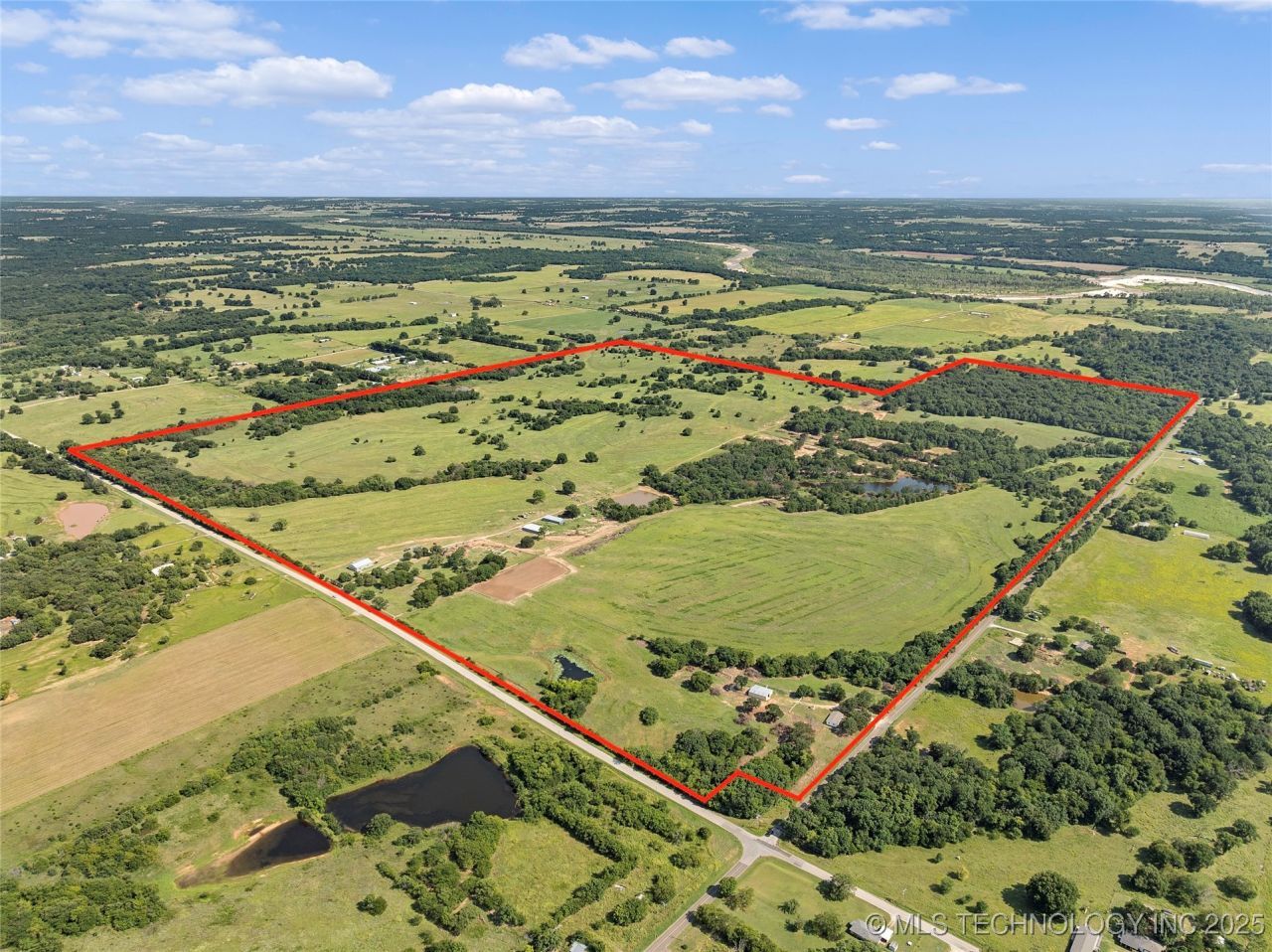 Rare opportunity to own 320+- acres of highly productive, turnkey ranch land with multiple homes, just 40 minutes from Oklahoma City and 2.5 hours to DFW. This exceptional property offers the perfect blend of income, recreation, and lifestyle-ideal for cattle, horses, farming, hunting, or private retreat. Excellent productive pastures, fertile loamy soils, and an abundance of water, all contributing to consistent yields and long-term sustainability. Treated and fertilized in 2025, the land currently sustains 60 cow/calf pairs, 15-20 horses, and hay production, with potential to expand. Forage is plentiful, and the opportunity for additional hay production is abundant. Pastures are cross-fenced for rotational grazing, while wooded creek bottoms provide outstanding wildlife habitat or could be cleared for more grazing. Trophy whitetail, wild turkey, stocked ponds, and mature pecan trees add to the ranch's appeal. Improvements include a 150' x 300' pipe roping arena, outdoor arena, multiple pipe corrals with shelters, three barns, working pens, and pipe/wire fencing. Multiple water sources-wells and rural water-ensure reliability for livestock and homes. Residential amenities are equally impressive. A new 1,600 sq ft main home showcases vaulted ceilings, open living spaces, wood flooring, stainless appliances, a main-level master suite, two upstairs guest bedrooms, and an attached 1,600 sq ft shop with overhead door, water, and electricity. The second home, updated and well-kept, offers 1,152 sq ft with 3 bedrooms, 1.5 bath, barn, and in-ground cellar. A third home (1,357 sq ft, 3 bed/1.5 bath, circa 1920) provides excellent potential for staff or rental income with some TLC. Together, the main and second homes provide 2,752 sq ft MOL of finished living space, not including shop or barns. With blacktop frontage, multiple homes, productive pastures, and subdivision options this ranch checks every box. Wildlife pics included!