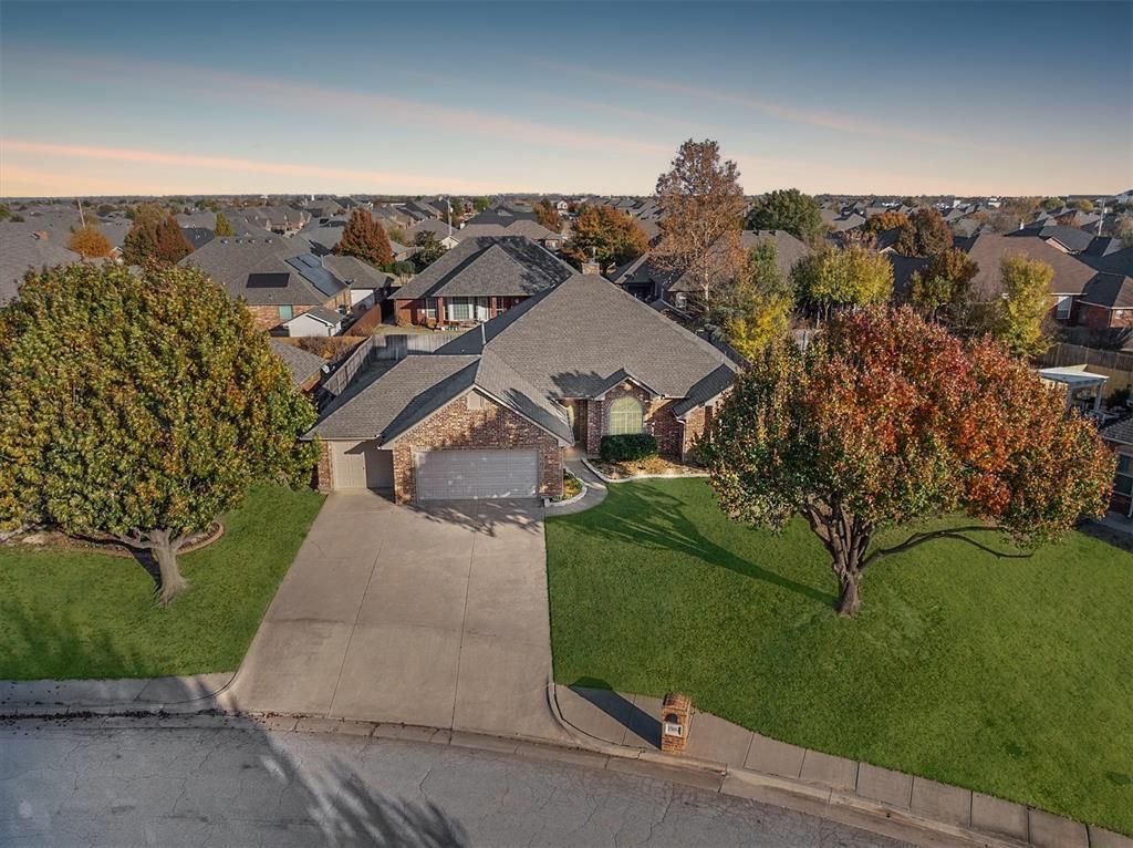 Welcome to Blue Quail Ridge at 15604 Brenner Pass, an inviting and beautifully maintained home offering comfort, space, and functionality throughout. This thoughtfully designed property features spacious bedrooms plus a private study, and a 3 car garage, providing ample room for everyday living, working from home, and entertaining. As you enter inside, you are welcomed by a warm and open living area highlighted by a brick fireplace and wood flooring. The layout flows seamlessly into the dining space, creating an ideal setting for family gatherings, casual meals, or hosting special occasions. The well-appointed kitchen offers both practicality and style, featuring an island, abundant counter space, double ovens, generous cabinetry, and a dedicated pantry for optimal storage. Your primary suite is a true retreat, complete with a comfortable sitting area and a spacious en-suite bathroom. The bathroom includes two separate vanities, a walk-in shower, and an expansive closet, providing both comfort and convenience. Two additional guest bedrooms offer flexibility for family, guests, or hobbies, and the dedicated study can easily function as an optional fourth bedroom. Step outside to enjoy the large, fenced backyard, perfect for quiet evenings outdoors. The covered back patio enhances the space, offering a great spot for morning coffee, or unwinding at the end of the day. New roof installed in 2025. Residents of Blue Quail Ridge enjoy access to community amenities including a neighborhood pool with an on-duty lifeguard during summer months, as well as a play area. The location provides exceptional convenience with quick access to major highways. Nearby shopping, dining, entertainment, and outdoor recreation. offer endless opportunities just minutes from your doorstep. The home is located in the highly rated Edmond School District. This property blends comfort, functionality, and community living in one inviting package. Welcome Home.