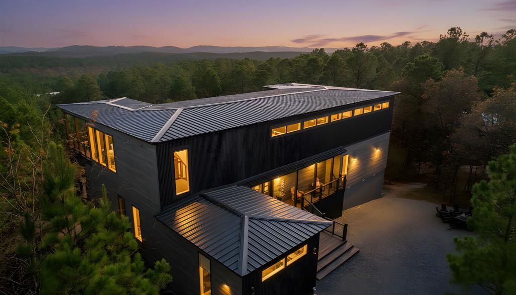 Welcome to this stunning masterpiece, an exceptional modern-luxury retreat nestled on 1.23 wooded acres in the highly sought-after Pine Hills area of Broken Bow. This newly built 6-bedroom, 6-bathroom residence spans nearly 4,000 square feet and blends striking contemporary architecture with the warmth and serenity of cabin living. Designed for comfort, privacy, and unforgettable gatherings, this home offers an elevated experience from every angle.Stepping inside, you're greeted by soaring ceilings, expansive windows, and a seamless open-concept layout that floods the home with natural light. The main living area features sleek modern finishes, steel and concrete construction elements, and three electric fireplaces that create an inviting yet sophisticated atmosphere. The chef's kitchen is both stylish and functional, complete with premium cabinetry, stainless appliances, generous prep space, and an oversized island perfect for entertaining groups of all sizes.With six spacious bedrooms-each with its own adjoining bath-the home easily accommodates large families, multiple couples, or luxury short-term rental guests. The thoughtfully designed two-story layout includes a dedicated game room, sunroom, and multiple living areas that offer flexibility for relaxation and recreation. Outdoor living is a centerpiece of the property. Multiple covered and open decks extend your living space into the treetops, providing peaceful vistas and plenty of space to unwind. Gather around the fire pit under Oklahoma's star-filled skies or enjoy the private hot tub after a long day of mountain adventures. The wooded 1.23-acre lot offers both privacy and a true retreat-style experience. With its prime location, modern amenities, and luxury cabin ambiance, this residence stands out as one of Broken Bow's premier offerings. Perfect as a personal getaway, STR investment, or multi-generational retreat, this modern cabin captures the very best of what Hochatown living has to offer.