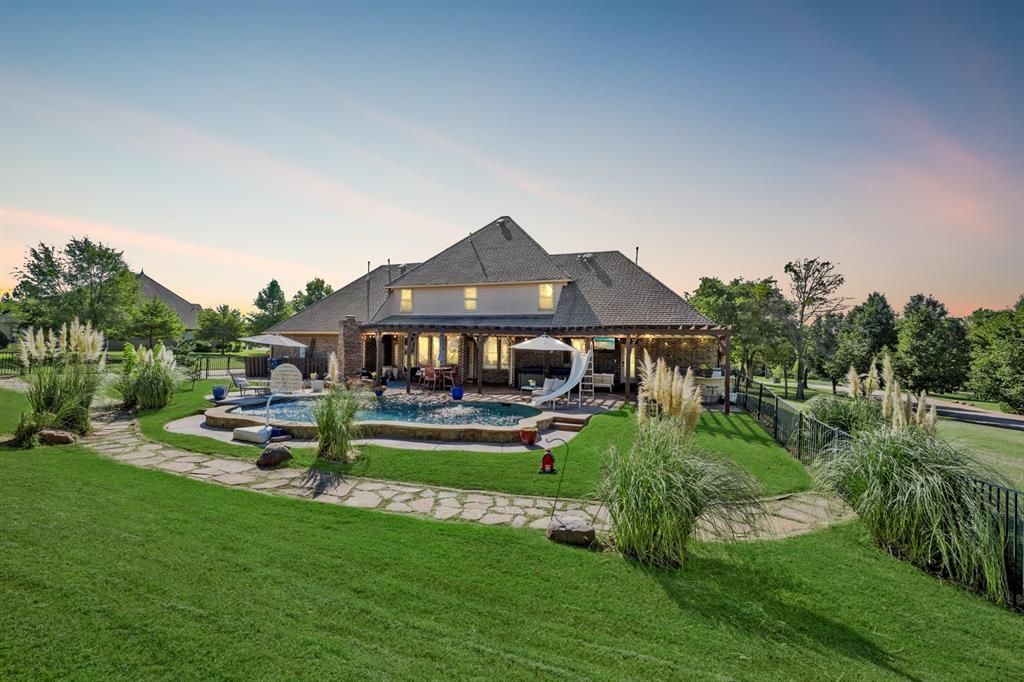 Live the Lifestyle You Deserve. Nestled in the sought-after, gated enclave of Edinborough Pointe in East Edmond, this exceptional residence offers a perfect blend of timeless elegance and everyday comfort. A spectacular resort style pool redefines outdoor living with a pergola, fire place, outdoor kitchen, and multiple outdoor living spaces. Step inside to discover rich hardwood flooring flowing throughout the main living spaces, bathed in natural light and framed by high ceilings. The expansive living room is a true showstopper, with a corner stone fireplace, and seamless flow into the gourmet kitchen and dining areas-crafted for effortless entertaining. The chef-inspired kitchen is a dream come true, featuring premium stainless steel appliances including double ovens, sleek countertops, and a layout that's as practical as it is stylish. Unwind in the serene primary suite, with a private entry to the backyard and pool area. The remodeled spa-like ensuite is a sanctuary in itself, boasting a luxurious jetted soaking tub, separate vanities, a massive walk-in shower, amazing closet, and private access to the patio. Upstairs, discover a three additional bedrooms with 2 full bathrooms, and a versatile bonus space perfect for a playroom, home gym, or second living area. Downstairs also includes a dedicated home office and formal dining, ideal for both work and entertaining. Outdoor living is equally impressive, with a spacious covered patio, outdoor fireplace, and a large yard ready for summer gatherings. Storm shelter in the garage. Well water and Septic system. The Property also includes the area where the valleyball net is set up. This is more than a home-it's a statement in luxury, designed for those who appreciate the finest in quality, design, and location. Welcome to your forever home at 1701 Manchester Avenue, Edmond, Oklahoma.