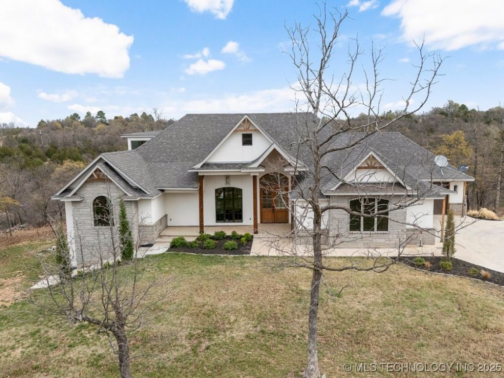 Envision a luxurious home that seamlessly integrates comfort and elegance, with cathedral ceilings and beautiful windows that create a bright and airy atmosphere. The home features gorgeous wood floors throughout. A striking brick wall in the living area, entryway and master bedroom creates a lasting impression. The kitchen is appointed with custom built-in cabinets, soft-close drawers and professional-grade appliances. A spacious quartz island provides the perfect setting for food preparation while socializing with guests. An adjacent outside bar area offers additional opportunities for entertainment. The expansive master bedroom boasts a cozy fireplace. The master bathroom is a serene retreat, complete with a large walk-in closet and a built in safe. It isn't until you walk downstairs that you see all the square feet this home truly has. Downstairs features additional living space, four bedrooms and two bathrooms. A kitchenette, safe room, and utility room with a dog wash/grooming station are also included. There are two laundry rooms, one upstairs and one downstairs with plenty of storage and space. The residence features instant hot water system, built in de-humidifier, electronic air filters, surround sound and security cameras. The three-vehicle garage is insulated, as is the attic. Upon stepping outside, you can take pleasure in the 7.1 m/l acres and the fenced, raised garden beds ideal for gardening. This property is conveniently situated between Tulsa and Stillwater. This exceptional residence offers numerous details that warrant a personal viewing.