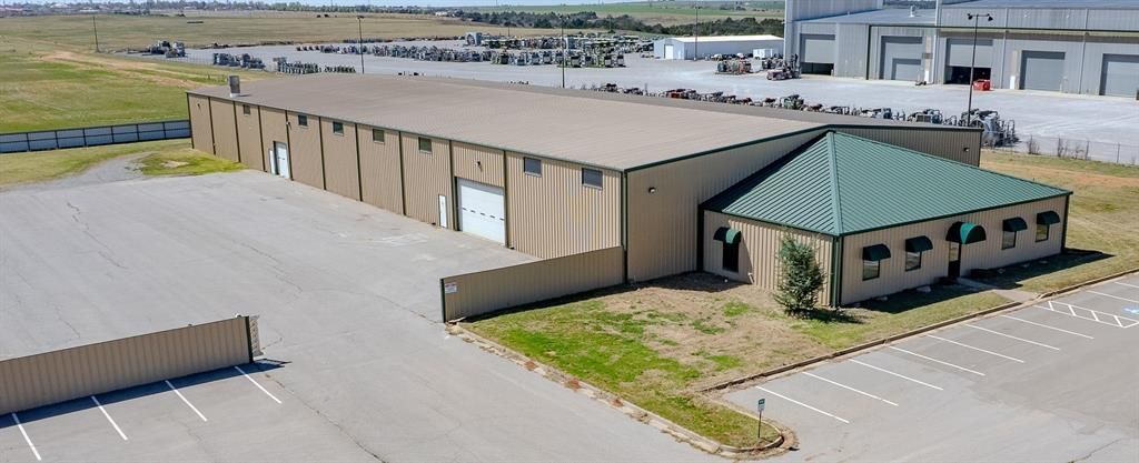 Exceptional opportunity to own a turnkey fabrication shop, data center or industrial facility with prime access just 1.5 miles south of I-40 and 45 minutes west of Oklahoma City. Strategically located between El Reno and Weatherford, each only 20 miles away, this property offers convenience, infrastructure, and versatility for manufacturing, oilfield services, distribution, or regional operations. Situated on 3.22 acres and built in 2014, the facility features 26,980 square feet of space, including 21,980 square feet of climate-controlled area, fully insulated with spray foam and vented throughout. The 19,680 square foot manufacturing space is supported by robust electrical infrastructure including 800 amp, three-phase, 480V power. There are four assembly bays, three grade-level drive-in doors, and two two-ton bridge cranes. A 2,300 square foot office area includes a reception area, recessed lighting, and storage space, making it ideal for administrative functions.The building is well-lit with LED lighting throughout and supported by access lighting and a comprehensive security system. It also includes a blasting booth and a separate paint booth, each with dedicated filtration systems and the latter with a trolley system for efficiency. Outside, the property offers a premium asphalt parking lot totaling a half-acre, plus a large, fenced yard providing both privacy and additional secured parking or storage. The lit monument signage ensures visibility for passing traffic. This well-equipped and meticulously maintained industrial property offers a rare blend of location, functionality, and readiness for a wide range of commercial uses.