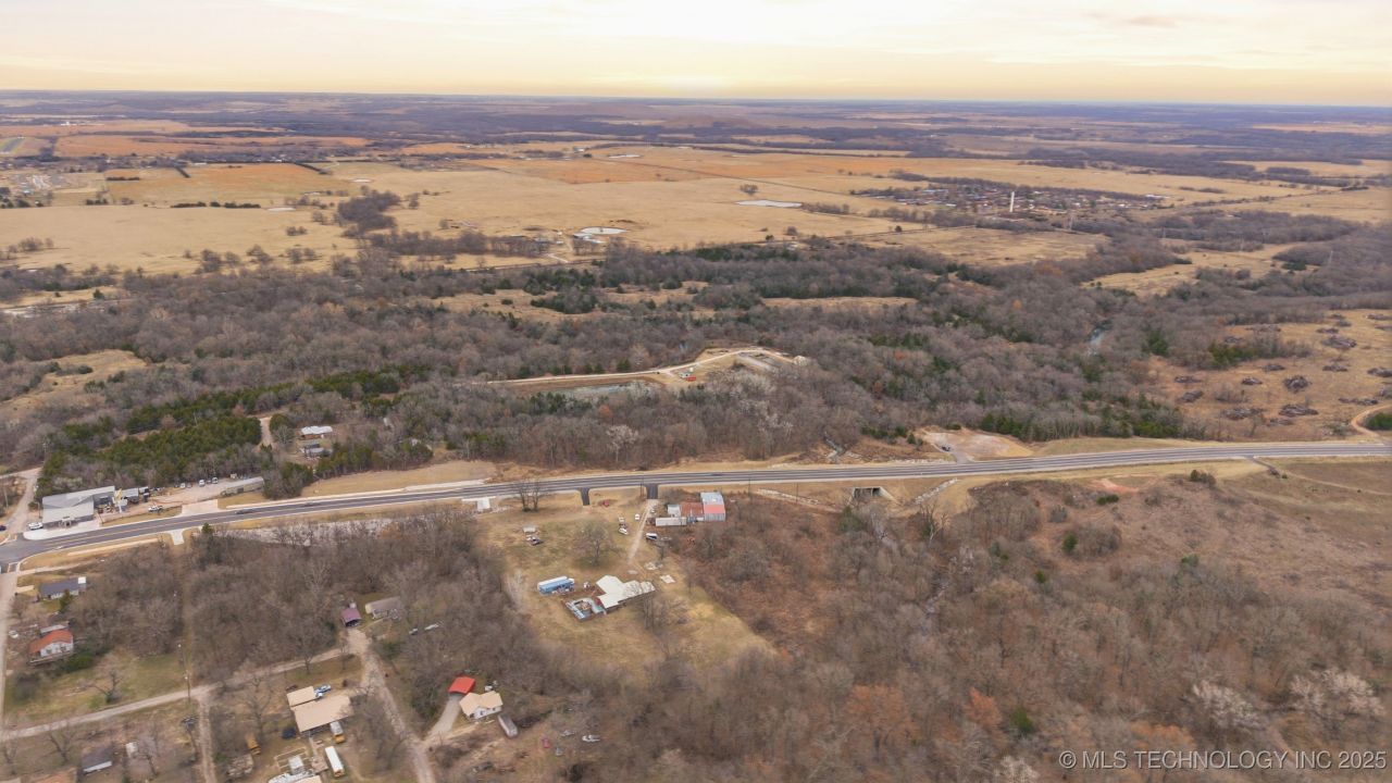 Beautiful wooded land extending to both sides of Highway 20. You will get two parcels for the price of one. Acreage is for both tracts of land, 7.84 acres, per survey. Pin stake survey is on file. Close to Skiatook Lake and Hominy Creek. Utilities are available. Land includes workshop and storage tank.