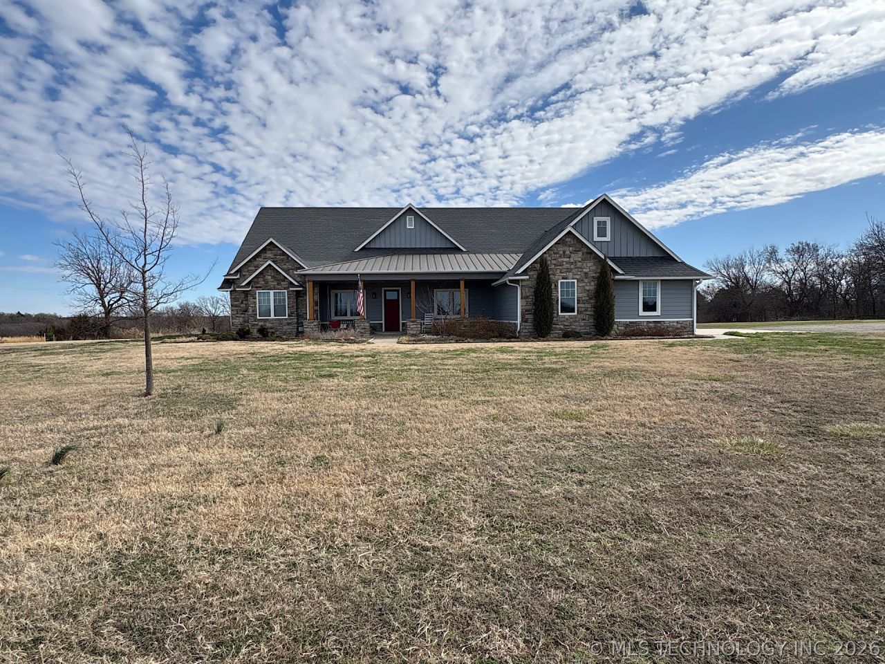 Discover the perfect blend of luxury and country living at 2323 N Oak Grove Road. This beautiful craftsman style home sits on 30 acres of scenic Oklahoma countryside, ideally located between Cushing and Drumright, offering space, serenity and endless possibilities. This exceptional property is perfect for recreation, horses, livestock, hunting or simply enjoying the outdoors, featuring a braided rope electric fence along the front of the property ideal for safely accommodating horses. An inviting covered front porch with swing sets the tone - the perfect spot to relax with a glass of sweet tea while taking in breathtaking Oklahoma sunsets. Then....step inside to a bright and thoughtfully designed interior built for both everyday living and entertaining. The home features 3 bedrooms, 3 bathrooms, 3 car garage, dedicated office, formal dining room, spacious living room with fireplace and beautiful white built-in entertainment center, and cozy breakfast nook. The heart of the home is the stunning open kitchen complete with crisp white cabinetry, a large pantry and a massive granite island that is ideal for gathering, meal prep, holidays and hosting family and friends. The primary suite offers a true retreat, featuring a large walk-in closet with indoor safe room, plus spa like bathroom with soaking tub and walk-in shower. Upstairs, a generous bonus room provides flexible space for a game room, second living area, exercise room, quiet reading nook or man cave. The bonus area also includes an unfinished bathroom and walkout attic space offering excellent storage or future expansion potential. This property is conveniently located between Tulsa (44 miles) and OKC (58 miles)! Call today for your private showing.