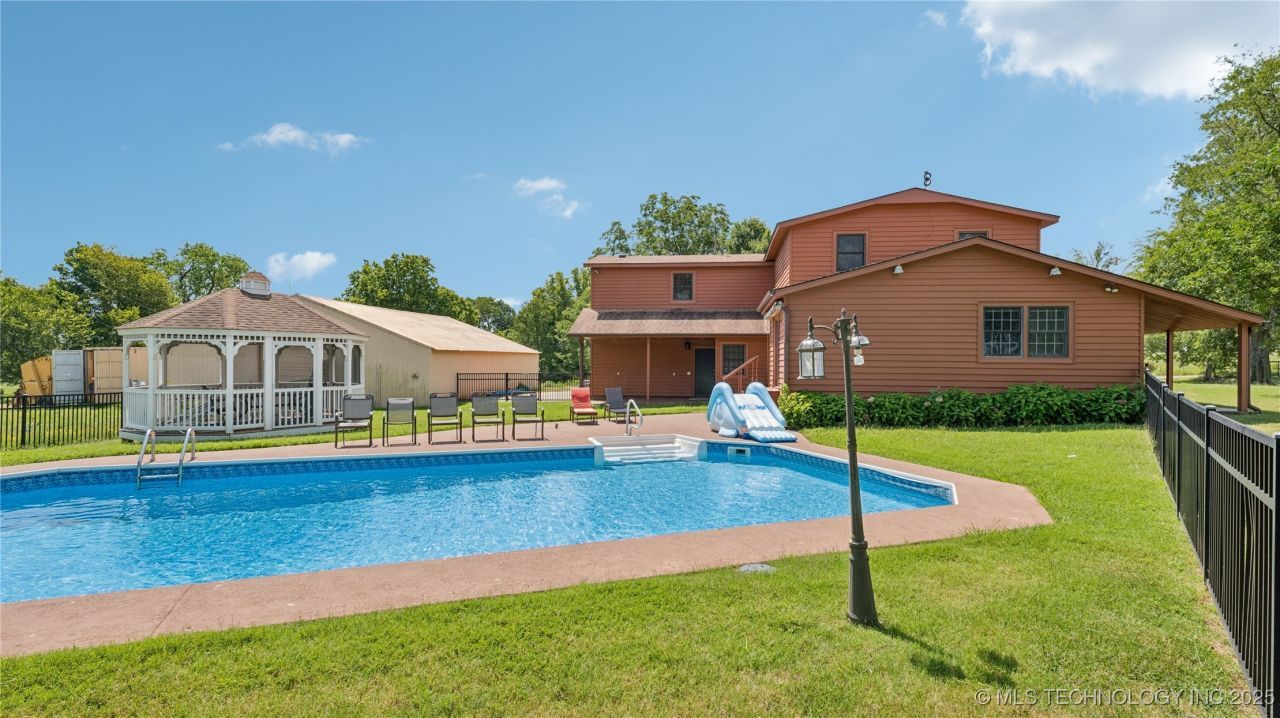 GREAT PRICE ADJUSTMENT Make your Country Living Dream come true! This 5 bedroom house features geothermal heating and updated kitchen and baths. Beautiful granite countertops in kitchen along with dual cooktops. Relax in the welcoming backyard complete with inground pool, gazebo, and separate outside pool bath. With 40 acres m/l, a large barn/shop, cross fencing, and a pond and pasture, this property is well appointed for livestock.