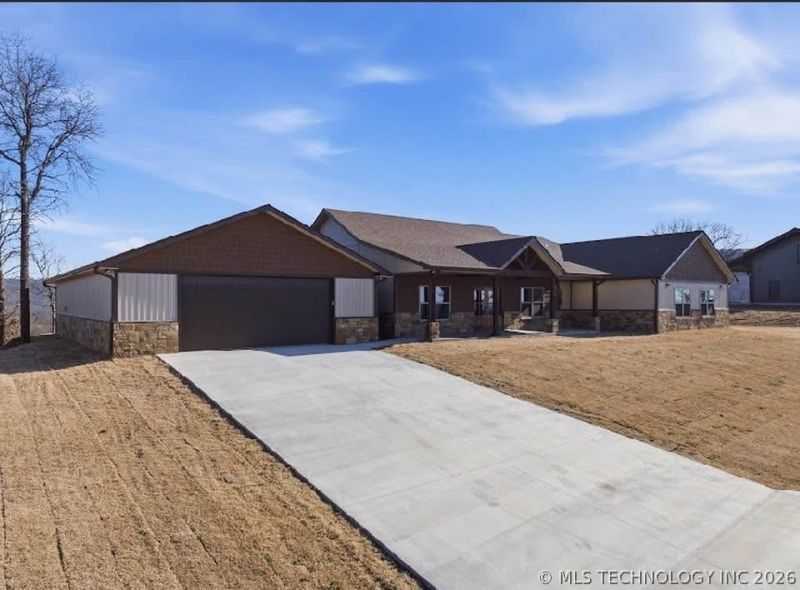 Now includes 5 bedrooms AND a 30X50 complimentary finished shop! Welcome to your brand-new construction home nestled on over an acre of prime Lake Tenkiller property. This spacious 2483-square-foot (per builder) home offers the perfect blend of modern comfort and natural beauty. Step inside to discover 5 generous bedrooms and 2.5 bathrooms wrapped in contemporary style. The heart of this home is its open-concept living and dining area - perfect for entertaining or relaxing while soaking in those spectacular lake and valley views through large windows. No detail has been overlooked in the thoughtful design! Luxury vinyl plank flooring flows throughout, providing both elegance and durability. The kitchen and bathrooms feature stunning granite countertops that add a touch of sophistication to every space. The primary bedroom offers a peaceful sanctuary with its own ensuite bathroom, while the attached two-car garage provides convenient security for vehicles and storage. Located in the desirable Oakridge at Chicken Creek community, you'll be at the center of Lake Tenkiller's famous Bassmaster events. The Chicken Creek Point Public Use Area is just a short distance away, offering endless recreational opportunities. Purchase now and you'll have the exciting opportunity to add your personal touches to the finishing details, truly making this house your home. Whether you're seeking a permanent residence or vacation getaway, this waterfront property delivers the lake lifestyle you've been dreaming about - where every day feels like a vacation! Contact your agent for a link to the virtual video walk through!