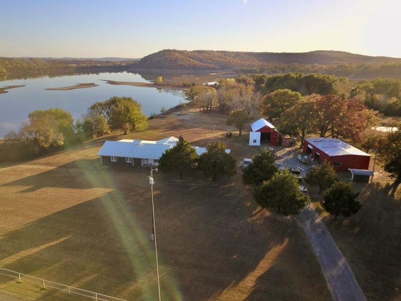 Experience peaceful lake living on this 13.5 +/- acre waterfront retreat on beautiful Lake Eufaula. The property features a charming rock-exterior home with a durable metal roof, large scenic windows, and spacious rooms offering direct water views throughout.Enjoy open pasture, mature trees, and multiple outbuildings, including a 36'15' +/- barn and a 29'49' +/-shop with three bay doors, new spray-foam insulation, and power. A rain-fed pond recently pumped septic system, and three hot water heaters provide added convenience.The home offers direct lake access and a covered patio off both the living room and primary suite. Ideal for a full-time residence, weekend retreat, or investment opportunity, with room for additional structures if desired. A rare 13.5 +/- acre waterfront property with sweeping views and exceptional privacy.