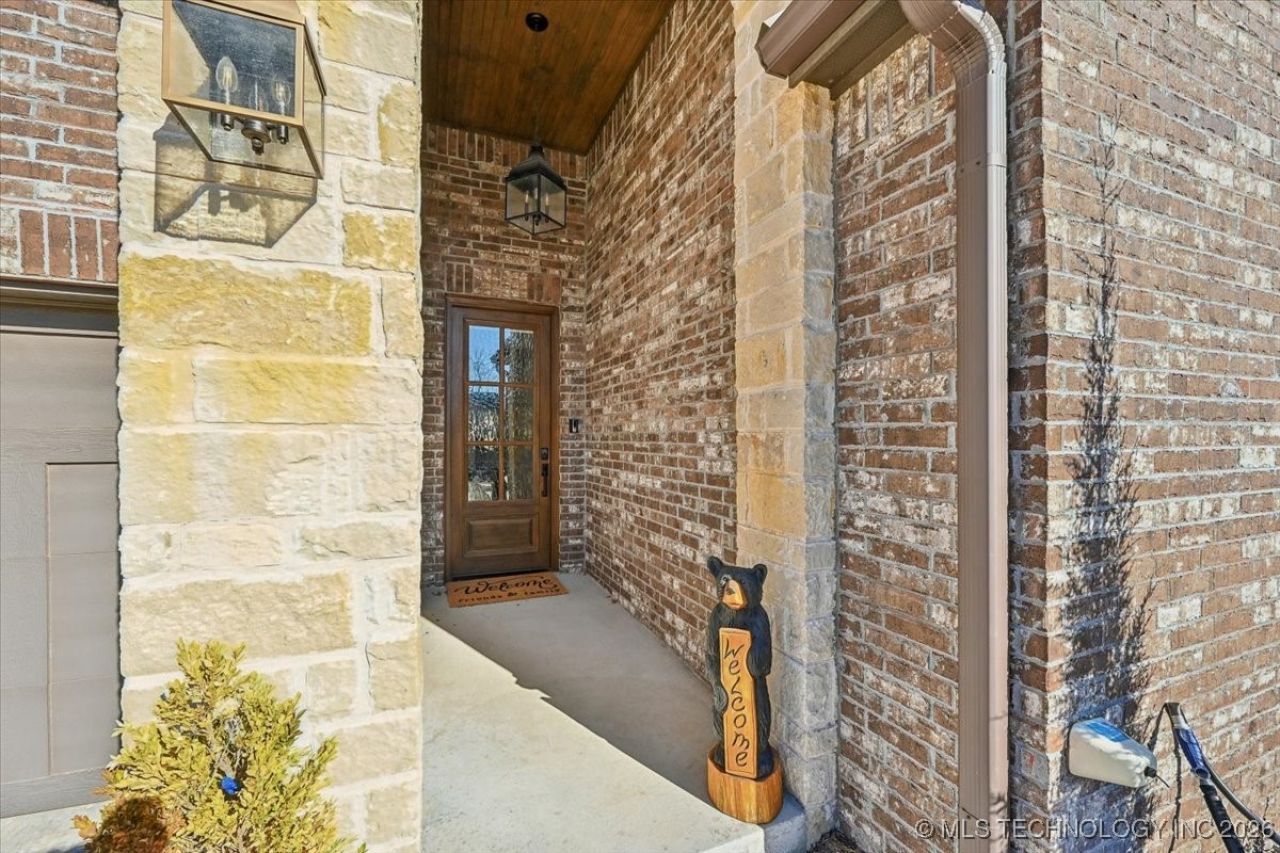 Nestled in the gated community of Rabbit Run, this luxury, one level, low maintenance lock-and-go home offers exceptional quality, comfort in better than new condition! The open-concept design showcases a stunning floor to ceiling limestone fireplace with gas logs, vaulted ceilings with beams, expansive windows with custom electric shades, rich wood flooring and custom stained cabinetry throughout. The kitchen boasts stainless steel appliances, a granite center island with seating bar, two walk-in pantries, and abundant natural light from a skylight. The private primary suite includes two large his-and-her walkin closet and a beautiful spa-style en-suite bath. The second bedroom is spacious with walk-in closet with an en-suite full bath with tiled shower. The third bedroom adjoins the family room with pocket privacy doors and features a wall-mounted Murphy bed and closet, offering flexibility as a guest room, media room or office. Outdoor living includes a covered back patio and a beautifully landscaped, low-maintenance private backyard with brick walls and a new side iron gate for added security. Garage includes an electric vehicle charger. The neighborhood has beautiful gathering center as well as walking trails. Ideal for downsizing or those seeking a refined lock-and-go lifestyle with convenient access to shopping, dining and downtown Tulsa!