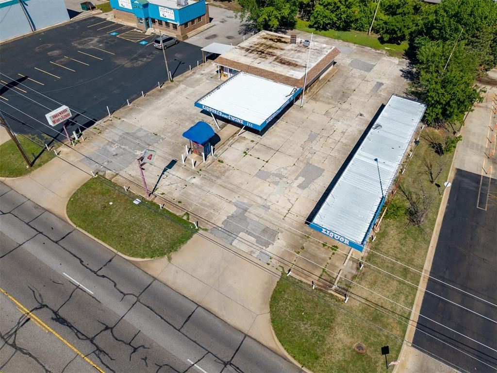 Prime location on a major north-south arterial in the heart of Midwest City. Very high traffic counts with data showing over 20k vehicles daily. The property is zoned C-3 with a special use permit for liquor sales. Great proximity to Tinker AFB. The property offers parking for over 30 vehicles, with 16 covered spaces, and an existing pole sign. The building has an existing drive-thru and the current configuration provides approximately 1126sqft MOL of sales floor, with another 180sqft MOL separated by a faux wall that, if removed, could bring the showroom area up to around 1,300sqft MOL. 2 small office areas of around 179sqft are in place, and there is a refrigeration unit that is not currently operable. As a Bonus, there is a dry basement space that is not shown on county records of 888sqft MOL, that could be utilized as a perfect back-stock room. All shelving/racking stays with the property.