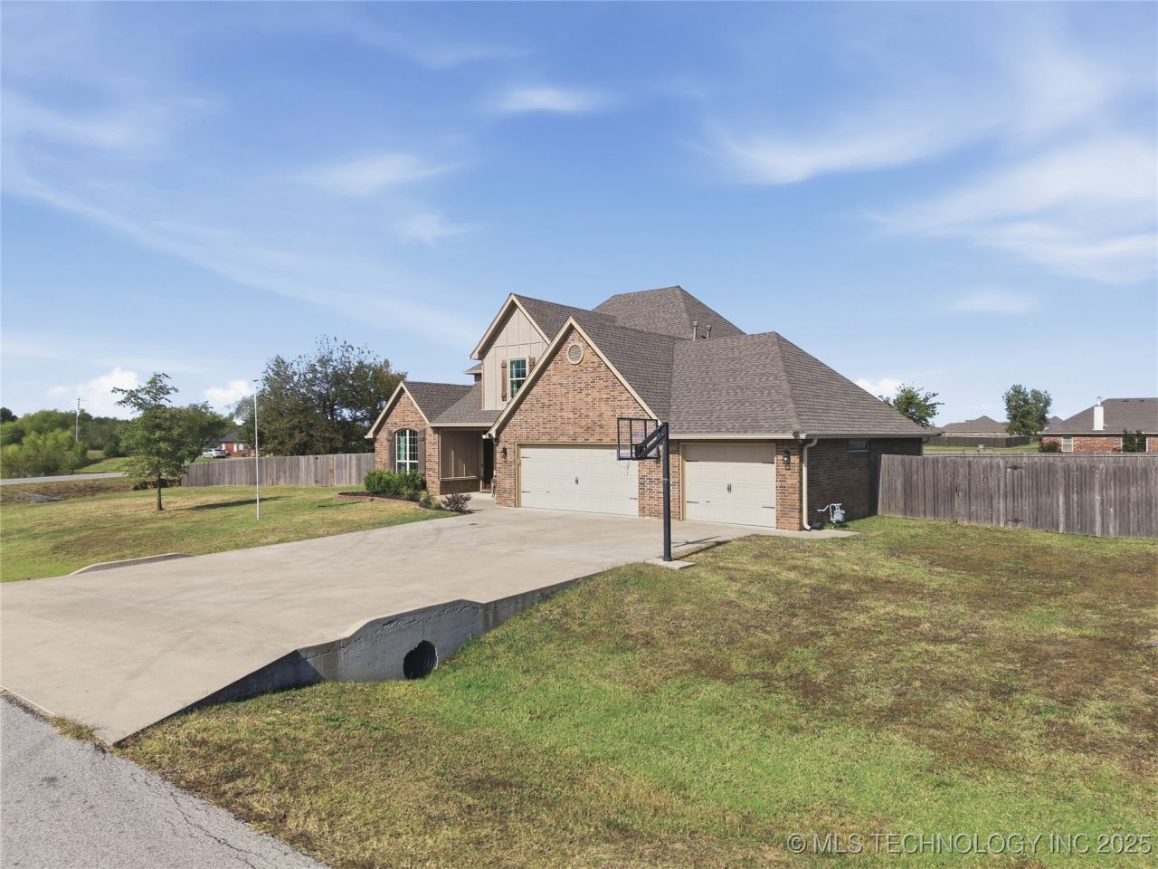Beautiful 5-bedroom, 3 full bath home on an expansive corner lot in Skiatook's desirable Cooper Landing Subdivision - Conveniently located just off Highway 75 for easy metro access. This updated home features a 4-car garage with a convenient pass-thru overhead door leading to backyard. Open-concept first floor showcases durable vinyl plank flooring throughout, creating a seamless flow between living areas. Chef's kitchen features a walk-in pantry and a large custom mobile prep island complete with matching granite top & cabinetry below. The primary suite and two additional bedrooms are located downstairs for easy access, while the upstairs level offers two more bedrooms, a large game room, and a third full bath. The primary bedroom is massive, and features recessed lighting, a trayed ceiling as well as dual vanities, whirlpool tub and water closet in the en suite primary full bath. The .83 (+/-) acre (ch) corner lot is cross-fenced backyard - ideal for entertaining, gardening, or pets. With ample parking and flexible living spaces, this home combines comfort, functionality, and plenty of room to grow.