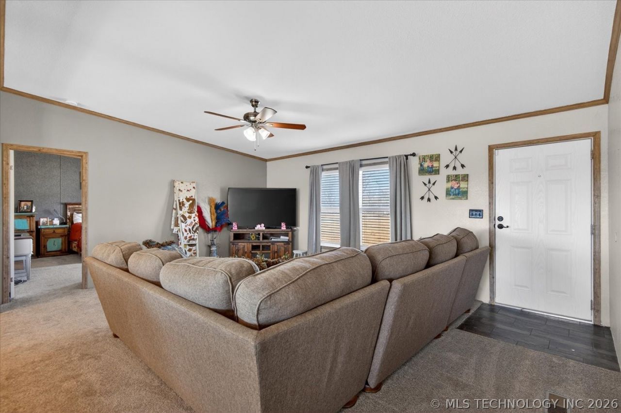 Welcome to countryside living with almost 30 acres and a home with 4 bedrooms and 2 full bathrooms. The home features a large kitchen with island and a pantry. The open concept home includes a living and dining area next to the kitchen. The primary bedroom boasts an ensuite bathroom with a shower, soaking tub, double sink vanity and a large walk-in closet. There is an additional 2nd living area being used as a family room, but would make a great location for an office, hobby room or exercise room, so many options. Updates include new roof in 2025, in 2023 a new water, electric, septic system and fencing. The covered back patio is 42x10 and a covered deck is 30x20. The large property is fenced and includes two ponds, one of which is 12 feet deep. You must see this property in person!