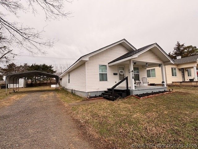 Welcome to this 3 bedroom 1 bath home offering blend of comfort style and convenience featuring fresh designer colors updated finishes and warm wood-look flooringthroughout This home feels modern yet cozy from the moment you step inside. the spacious kitchen boastx updated cabinetry,stainless appliances and generous counter space. Ideal for everyday living and entertaining. Outside,you will find a detached garage with extra storage sace perfect for hobbies, tools or seasonal items.Plus the added peace of mine of a storm cellar and a carport . Rather you are a first time home buyer or just downsizing this home checks all the boxes. You will be on Route 66