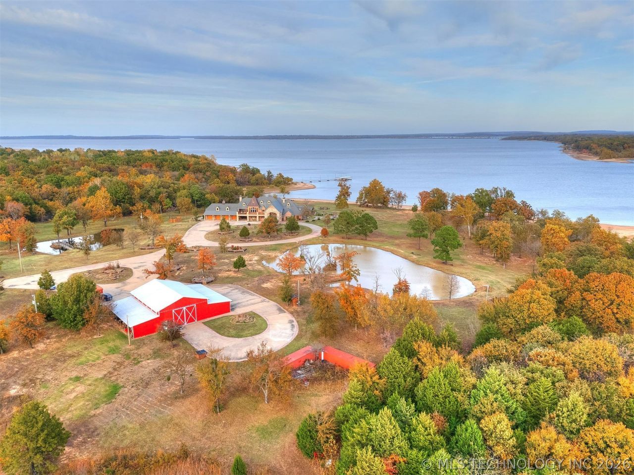Magnificent Waterfront Estate on 30+ Acres - The Ultimate Resort-Style Living! Situated on a gated 30.62-acre peninsula, this luxurious waterfront estate offers a resort-like atmosphere with unparalleled privacy and expansive indoor-outdoor living. With over 3,000 feet of sandy shoreline, this property provides a true lakeside experience with a private three-slip boat dock-making it the ultimate vacation retreat. Built in 2015, the main home boasts five spacious bedrooms-with room to add more-five bathrooms, a partial basement and safe room, and a layout designed for comfort, gatherings, and elegance. The grand living room features a wood-burning rock fireplace and overlooks the pool and waterfront acreage, seamlessly connecting the interior with the outdoors. The pool and hot tub area create a stunning focal point for relaxation and entertainment. Surrounded by spacious lounging areas, lake views, and easy access to the outdoor kitchen and bar, this space invites both quiet mornings and lively evenings by the water. The outdoor living spaces exude vacation vibes, complete with two fireplaces, a fire pit, two gazebos, and a full outdoor kitchen and bar-perfect for entertaining in style. The fully functional two-story treehouse with kitchenette and bathroom provides a unique retreat for guests or family. The property also features a separate apartment with kitchenette for additional guest space. Three stocked ponds enhance the picturesque surroundings. A gated entry ensures privacy, and a four-car garage with porte-cochre and large barn provide ample storage. An outdoor living area with pool table and fireplace offers the perfect setting to relax and entertain. The property also includes a poolside bathroom and additional laundry space for convenience. This exceptional estate offers the ultimate in resort-style living-without restrictions-with unmatched privacy and exclusive amenities. Schedule a private showing and experience this exceptional home.