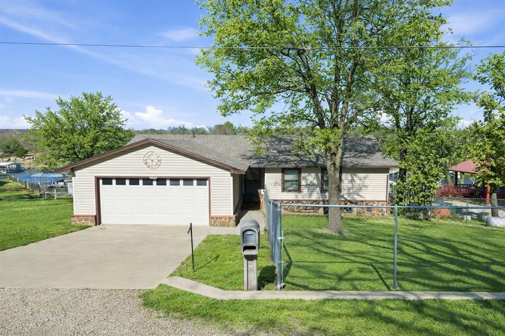 Imagine waking up every morning to breathtaking lakefront views, streaming through a stunning sunroom in your turnkey dream home. This exceptional property features a wraparound deck overlooking a peaceful cove and your own private boat dock, complete with a new boat lift for easy access to the water. No detail was overlooked in the top-to-bottom remodel, including luxurious LVP flooring throughout. The chef's kitchen is fully equipped with brand new granite countertops, an eye-catching sea blue tile backsplash, a commercial-style pull-down faucet, an upgraded stainless steel workstation sink, and even a wine fridge for entertaining in style. Spa-inspired bathrooms boast designer tile showers with sleek sliding glass doors and modern vanities. Picture cozy evenings by the large stone wood-burning fireplace in the open concept living area. Step into the sunroom, a newer construction addition, then out onto the expansive wraparound deck-ideal for unforgettable gatherings with a gas grill, hightop patio bar, and generous dining space. The roof and gutters were replaced in 2024 for peace of mind. Move in with ease, as the house comes fully furnished-including all appliances, a wine fridge, an ice maker, and an extra garage refrigerator. Mature trees provide natural privacy, and the property is fully fenced for your pets, complete with a convenient doggie door. The private dock and new boat lift are engineered to fit a tri-toon boat, making every lake day effortless. Located in the prestigious Lakeview Country Estates, less than a mile from the marina, this home offers a rare combination of tranquility and convenience. Whether you're searching for a personal sanctuary or a lucrative Airbnb opportunity, this spectacular lakefront retreat is ready to exceed your expectations.