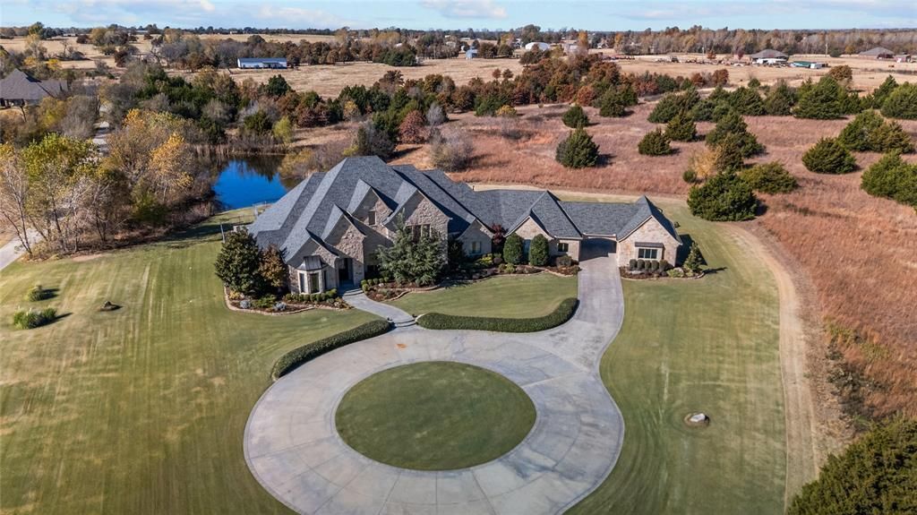Stunning attention to detail inside and out this beautiful home in Newcastle. Sitting on 8.29 acres of perfect paradise, with the city just a few miles away. Whether your looking to get to OKC in 20 minutes or Norman in 25, this is your perfect oasis. Upon entering, you notice vaulted ceilings with a formal dining area on your right and the office on your left, but what you notice first are the floor to ceiling windows that looking out back. Realize that hosting all your family events is a dream come true here. Off the living room you will the first bedroom and game room, filled with a pool table, shuffle board table, and amazing attention to detail. The kitchen flows perfectly to the living room with beautiful cabinets and huge island. Off the kitchen is a beautiful nook for extra storage and wine area. The Primary Suite is just perfect with floor to ceiling windows, vaulted ceilings, and a beautiful primary bathroom features a large walk in closet with a powder mirror. Stunning oasis of a jetted tub, double vanity, and walk in shower to get the day started or finished! The safe is located across from the primary walk in closet. Upstairs you will find the other 2 bedrooms, for a kid paradise. Don't worry you won't have to haul the laundry up and down the stairs as their is a 2nd laundry room on the 2nd floor. Each upstairs bedroom has their own attached bathroom, so no fighting over shower or sink time in the morning or evenings.Finally, once you make your way to the 3rd floor, you will find your media room for family movie nights, or the perfect sports weekend! With 5 TV's and a wet bar to host all your family and friends.There is an additional 5 acres towards the east and 5 acres towards the west that is available as well for an additional purchase if you want to add more acreage to your paradise.