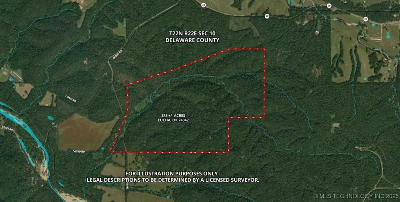 385 +/- ACRES NEAR SPAVINAW LAKE - MASSIVE ACREAGE WITH ROLLING TERRAIN, WILDLIFE, AND DEVELOPMENT POTENTIAL A rare opportunity to acquire a large, contiguous piece of land just minutes from Spavinaw Lake in scenic Delaware County. This expansive 385 acre property offers a mix of wooded hills, open meadows, and gently rolling terrain. It's ideal for recreational use, ranching, or creating a private retreat off the beaten path. While HWY 20 sits less than a mile away, this property offers a heightened sense of seclusion, accessible via a quiet county road that winds deeper into the countryside. It strikes the perfect balance between convenience and privacy. Whether you're looking to hunt, hike, build, or hold as a long-term investment, the size and natural features of this land make it exceptionally versatile. Established trails have already been cut throughout the property, making it easy to explore on foot, horseback, or ATV. A creek also runs through portions of the land, adding both visual interest and a natural water feature that supports local wildlife. Spavinaw Lake is just a short drive away, offering fishing, boating, and camping opportunities. Nearby creeks and natural springs enhance the land's usability and character. Wildlife is abundant, with frequent sightings of deer, turkey, wild hogs, and other native species. Opportunities to purchase this much acreage in one piece, especially this close to a major body of water, are increasingly rare. Schedule your private tour today and explore the possibilities. Buyer's Agents welcome.