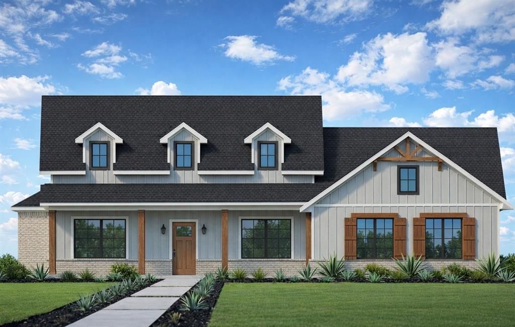 Welcome to this stunning modern farmhouse nestled on an oversized lot of more than half an acre, surrounded by mature trees and serene views in every direction. An elongated front porch sets the tone for the elevated design and warm, inviting charm found throughout the home. Step through the foyer into a breathtaking great room featuring a soaring cathedral ceiling, a striking fireplace, and custom built-ins that create the perfect focal point for everyday living and entertaining. The open-concept kitchen is a true showstopper, complete with a large center island, sleek appliances, and a sink perfectly positioned to overlook the peaceful backyard. A spacious walk-in pantry and an oversized dining area make hosting effortless and unforgettable. There's a flex room that can be used as a study, exercise room, craft room, or play room! The primary suite is a private retreat, showcasing cathedral ceilings with beautiful beams and tranquil views of the trees beyond. The spa-inspired ensuite offers a dual vanity, an expansive walk-in shower, a private water closet, and a generous walk-in closet designed for both luxury and function. Additional highlights include a large utility room with a sink and abundant storage, a convenient mudroom off the oversized three-car garage, and a stylish powder bath for guests. On the opposite side of the home, two spacious guest bedrooms share a Jack-and-Jill bathroom with a double vanity, offering comfort and convenience. Enjoy the outdoors from the oversized covered patio and expansive backyard-perfect for relaxing, entertaining, or creating your dream outdoor oasis. With high-end finishes throughout, neutral colors, subtle wood tones, and accented by pops of color, designer-selected lighting, and an elevated modern feel, this home is truly one-of-a-kind. The builder standards include energy efficient appliances, automated thermostats, post-tension foundation, full sprinkler system, and smart-home features.