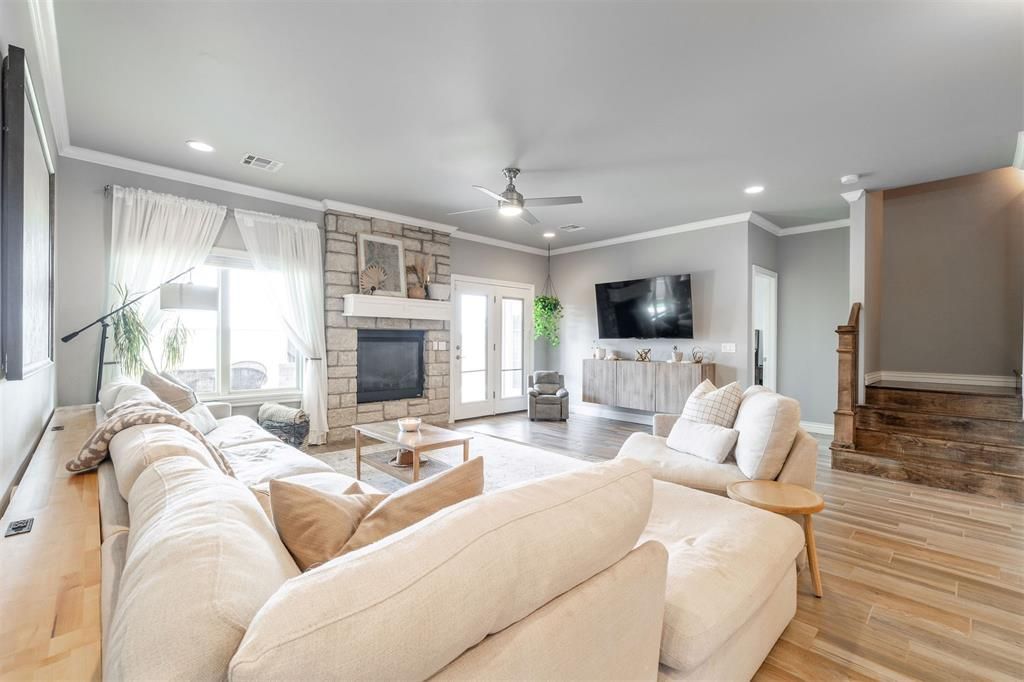 ***Motivated seller looking for best offer!***Step inside this beautiful home where modern finishes and warm touches combine effortlessly. The kitchen and dining area welcome you with a large marble-finished island, crisp white cabinetry, and stainless-steel appliances - including a double oven. Light wood-style floors, recessed lighting, and stylish pendant fixtures wrap the space in a glow that feels like home.The living room blends comfort and elegance with a stone fireplace and clean white mantel as the centerpiece. Abundant natural light and sleek accents - like recessed lights and a modern ceiling fan - add a polished finish. Step out to the covered back patio, ideal for quiet mornings or lively gatherings.The private master suite offers direct backyard access and a spa-style bath with double vanity, jetted tub, walk-in shower, and seamless access to the walk-in closet and laundry room. Two additional bedrooms and a full bath on the main floor create a functional layout for daily living.Upstairs, a versatile bonus room features a built-in kitchenette with sink, recessed lighting, bar height counter, and half bath - perfect for a game room, media space, or quiet retreat.Home Features:-Whole Home Water Filtration System-Dog Bath in Garage-Heat/AC in Garage-Walk-In Attic-In-Ground Storm Shelter-Generator Hook-up/Interlock-Butler-Style PantryNeighborhood Perks:-Gated Entry with Security Cameras-3 Doors Down from Pool & Furnished Clubhouse-Scenic Neighborhood Lake-Located in Piedmont SchoolsSchedule your private showing today and experience the comfort, convenience, and charm this home offers! *Kitchen island is being restored to it's original state without wooden table.*