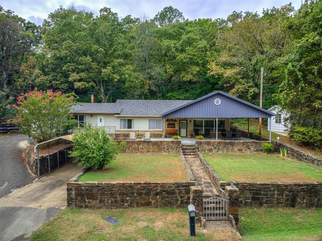 PRICE REDUCED!!! Year round lake views from the massive front porch! Located just across the road from Corps land you will rest easy knowing your view will not change. Situated at the bottom of the highly sought after neighborhood of Paradise Hill this truly is a hidden gem. Quiet, peaceful & private are just a few words to describe this setting. This recently renovated home is truly nothing like anything else available. Long list of updates in pics but to name a few: Granite countertops, knotty alder custom cabinets, SS appliances, new mini-split HVAC in 2022, new roof & hot water tank in 2021 & more... This home is move-in ready & FULLY FURNISHED, less a few personal items. The open concept living, dining & kitchen area all enjoy fantastic views of the lake through the wide triple window. 2 full bathrooms & 3 bedrooms that easily sleep 8-10 people. The 3rd bedroom is currently an oversized suite w/ one of the 2 fireplaces & a large sitting area. You could easily use this as a 2nd living room, bunk room, game room, etc... Even with as amazing as the inside is, you will be spending most of your time outdoors! The wide front patio is perfect for relaxing & entertaining. The small front yard is easy & quick to maintain & offers a fun spot for outdoor games. Go around the side of the home & find the private firepit landing that is backdropped by the beautiful rocky hill w/ steps & trails leading up through the established trees. An abundance of parking is another feature you will love. The one car garage provides extra storage space & a fun spot for ping pong tournaments or roll the table out under the carport for even more fun! Just a short golf cart ride away are private boat docks, the iconic Fin & Feather Resort & Soda Steve's restaurant. Just down the road is Strayhorn Marina & the Tenkiller Dam w/ trout fishing in the cool water at the base. Don't wait any longer -- it is time to fall in love w/ your new home & the spectacular morning sunrises you'll enjoy daily.