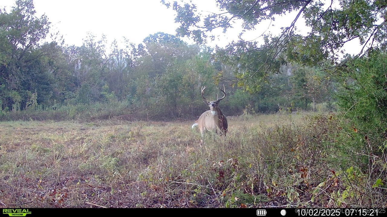 What more could you want? Caney Creek offers high ground with great views, 15+ acres of fertile bottom ground for Boone and Crockett food plots, a year round creek and massive hardwoods. As you come in from the East you have electric at the road and the boundaries are cleared on the North and South, an older cabin sits by the road as well. As you head west you sandy soils with smaller timber, plum thickets and most of this area has been terraced, a reminder of the old farm country in this area. About halfway you come to the new switchback road that drops 120 feet into the creek bottom. Here you feel like you entered a entirely different property. There are massive, Red Oak, Walnut, and Sycamore trees in this bottom, along with the open area full of fescue and soils ready to plant the food plot of your dreams. Next you come to Caney Boggy Creek, a year round creek full of wild life of all kinds. The creek crosses the property from North to South then give way to more remote hardwoods as you climb up out of the bottom to reach the East Boundary. Stay tuned for more pictures! The cameras have only been out a short while. So far we have plenty of big hogs and the big bucks are starting to show up as well. Read Less